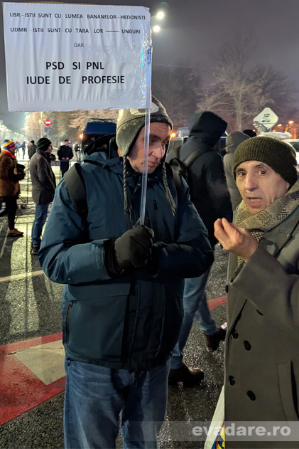 Câteva mesaje băteau obrazul trădătorilor de la putere, care au votat acea mizerie de lege și altele înaintea ei: „Iuda a fost și el tot un progresist pasionat de bani”, scria unul. Altul: „PSD și PNL, iude de profesie”. Un altul scria simplu: „Jos dictatura!”. Foarte bune și citatele din Iustin Pârvu despre tăcerea elitelor.