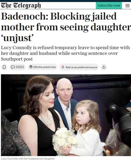 Pentru acel mesaj, Lucy Connolly a fost condamnată la 2 ani și 7 luni de închisoare. Din care a executat aproape jumătate, timp în care i s-a respins cererea să își vadă fiica și soțul bolnav. Abia anul trecut a fost eliberată.
