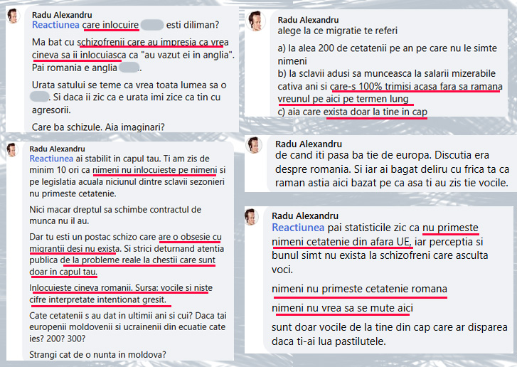 Între timp, și postacii s-au mai rafinat, au trecut la alte diversiuni sau trec peste subiect în tăcere. Că nu mai pot nega frontal realitatea vizibilă pe stradă și sunt prea mulți români care au fost sau sunt prin alte țări deja colonizate, care înțeleg mersul. Radu a rămas cu acele mesaje defazate, crede că e suficient doar să le dea mai agresiv.